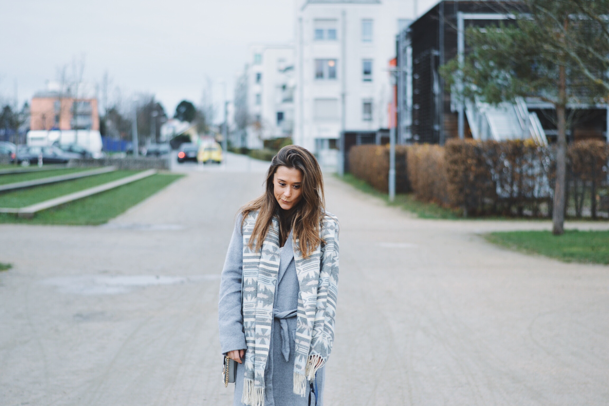 da mein Freund und ich zur Zeit wirklich nur am Arbeiten sind und uns nur spät abends zu Gesicht bekommen, haben wir den dritten Advent sehr gemütlich verbracht. Laaange ausschlafen, ein leckeres Frühstück zur Mittagszeit und ein ausgedehnter Spaziergang mit unserer kleinen Peppi standen auf dem Programm. Auch wenn die richtig winterlichen Temperaturen noch auf sich warten lassen, war die Stimmung trotzdem schon ein wenig weihnachtlich und den leckeren heißen Kakao auf der Couch danach, haben wir uns natürlich nicht nehmen lassen. Auch wenn ich mir die Bibberkälte so langsam echt herbeisehne, hat es auch seine guten Seiten, denn die Daunenjacke konnte ich ohne bedenken im Schrank hängen lassen und meinen neuen Wickelmantel ausführen. Ich war mir zuerst recht unsicher, ob ein doch recht langer Mantel überhaupt das Richtige für mich kleinen Menschen ist, aber habe mich dann trotzdem getraut. Mittlerweile ist er aus meinem Kleiderschrank nicht mehr wegzudenken. Am liebsten kombiniere ich ihn mit schlichten Stiefeletten oder meinen Stan Smith. Den Sparziergang mit Hund und Mantel haben wir für euch natürlich festgehalten 😉 Ich hoffe es gefällt euch.